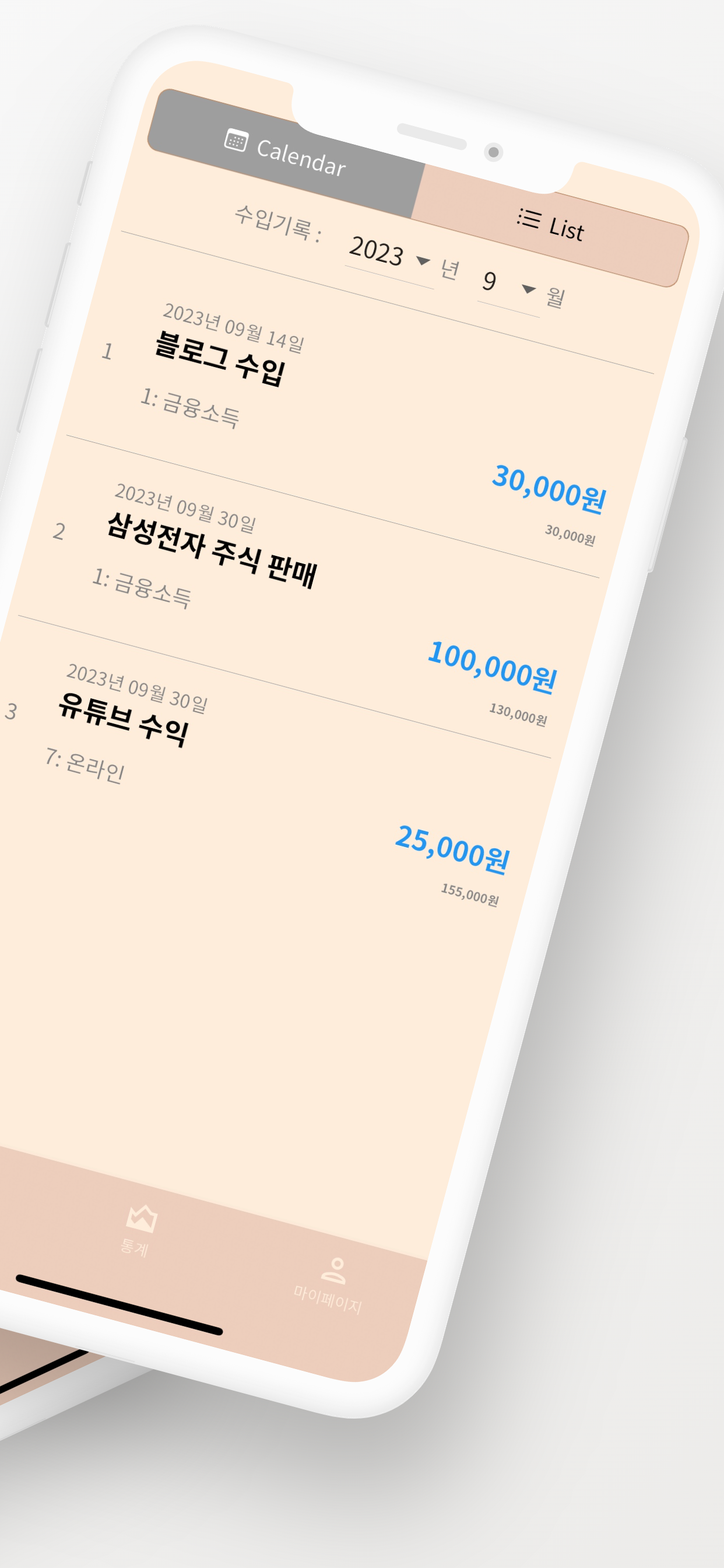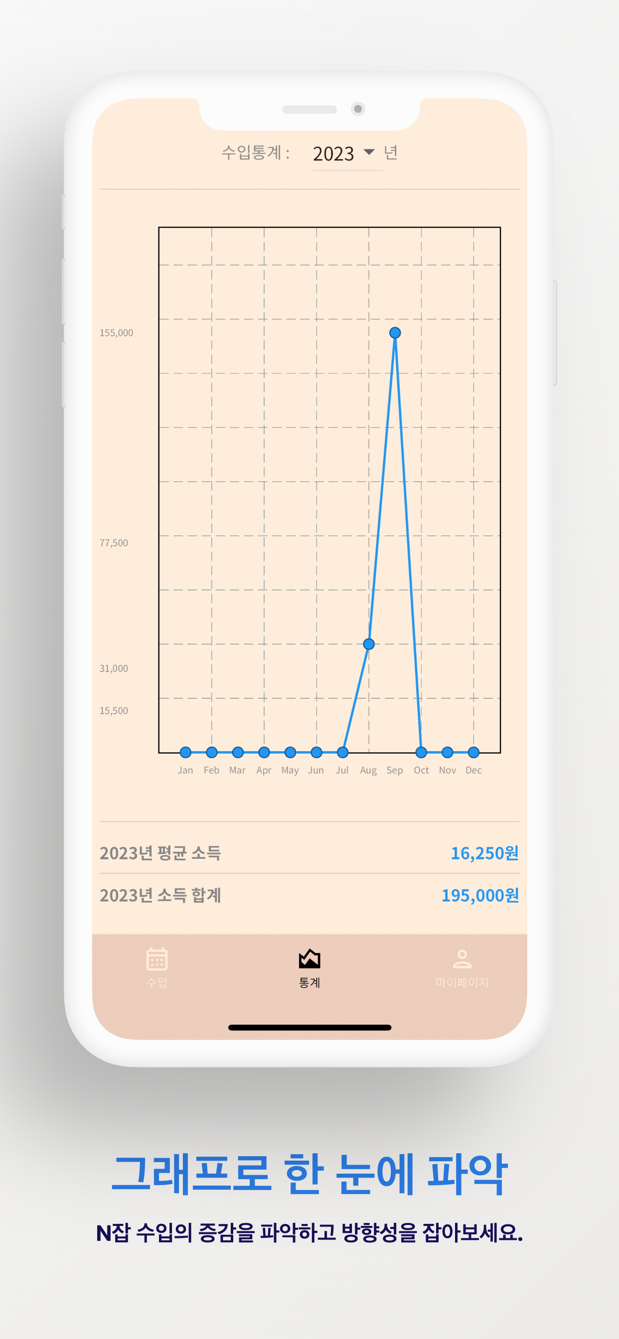 - 통계 기능 수입을 그래프로 한 눈에 파악할 수 있어요. 이를 통해 나의 N잡 수입의 증감을 파악하고 방향성을 잡아보세요.