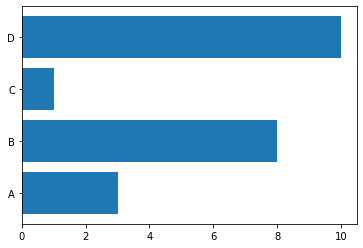 다음은 barh()를 사용하여 가로 막대 4개를 만드는 예시입니다.