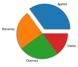 - shadows 매개 변수 : True를 설정하면 원형 차트에 그림자를 추가할 수 있습니다.