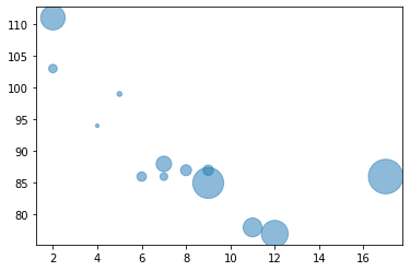 - 각 scatter에 색상, 크기, 투명도를 변경할 수도 있습니다.