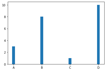 - Matplotlib에서는 hist()함수를 사용하여 히스토그램을 만듭니다.