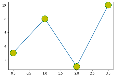 - 키워드 인수 marker를 사용하여 지정된 마커로 각 지점을 강조 할 수 있습니다.
