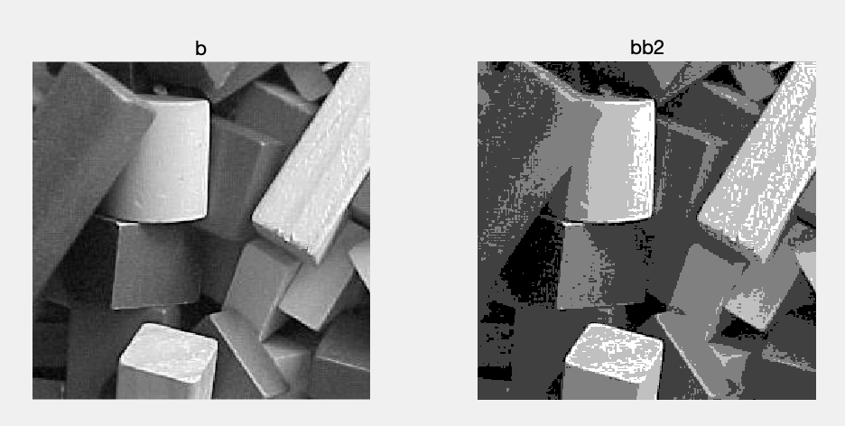 | b2 = imdivide(b,64); bb2 = immultiply(b2, 64); imshow(bb2) |