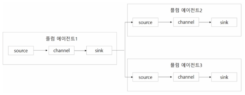 3) 한 개의 플럼 에이전트 안에서 두 개 이상의 Source-Channel-Sink 컴포넌트 구성