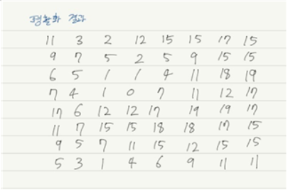 1) 히스토그램 평활화 과정을 손으로 풀어라.