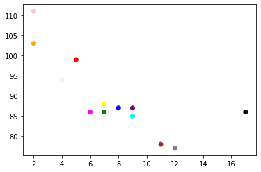 colors = np.random.randint(100, size=(100)) # 임의의 컬러 100개
