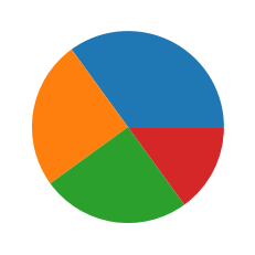 다음은 원형 차트는 배열의 각 값에 대해 하나의 조각 (웨지라고 함)을 그립니다 (이 경우 [35, 25, 25, 15]).