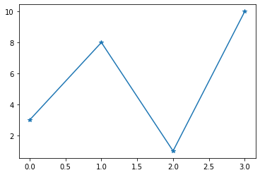 plt.plot(ypoints, marker = '*')