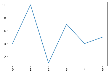 다음은 x축 지정 없이 y축만 [4, 10, 1, 7, 4, 5]를 주었습니다.