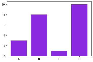 plt.bar(x, y, color = "BlueViolet") # 바의 색상을 BlueViolet로 설정합니다.