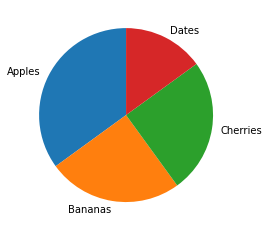 plt.pie(y, labels = mylabels, startangle = 90) # 시작 각도를 90도로 변경