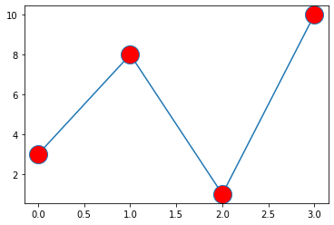 - 키워드 인수 marker를 사용하여 지정된 마커로 각 지점을 강조 할 수 있습니다.