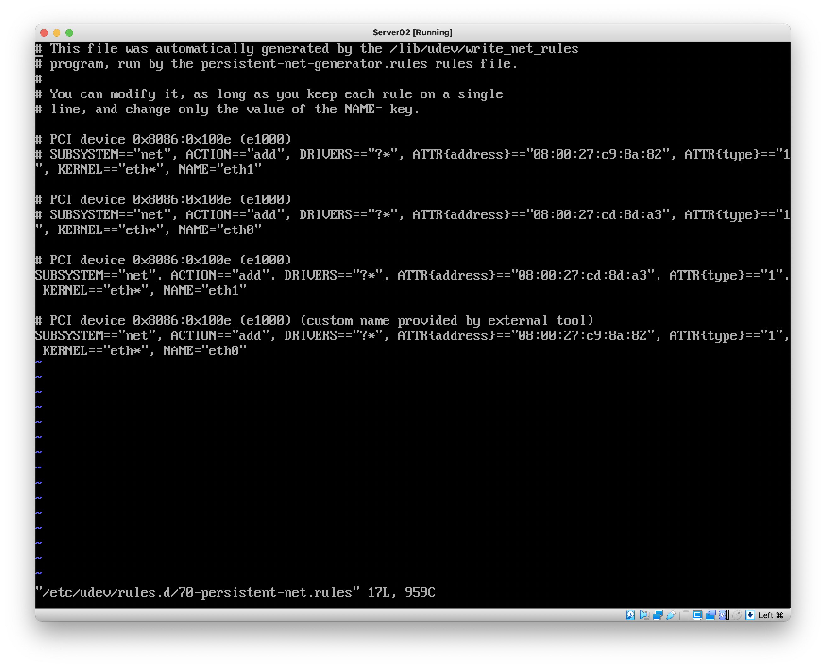 vi /etc/udev/rules.d/70-persistent-net.rules