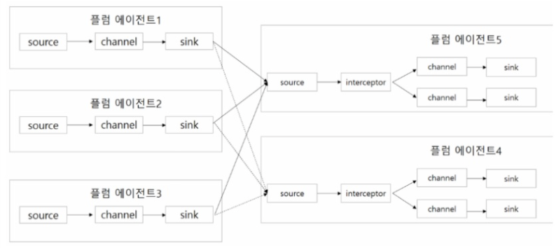 3) 한 개의 플럼 에이전트 안에서 두 개 이상의 Source-Channel-Sink 컴포넌트 구성